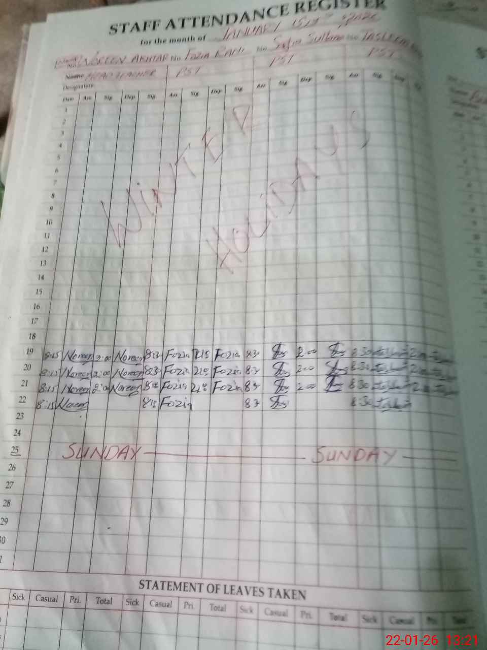 | 12**** | Ta**** Bi**** | BULAVI | 0 | 0 | 0 | 0 | 0 | 0 | 0 | 0 | 0 | Absent (Un-Authorized) | |