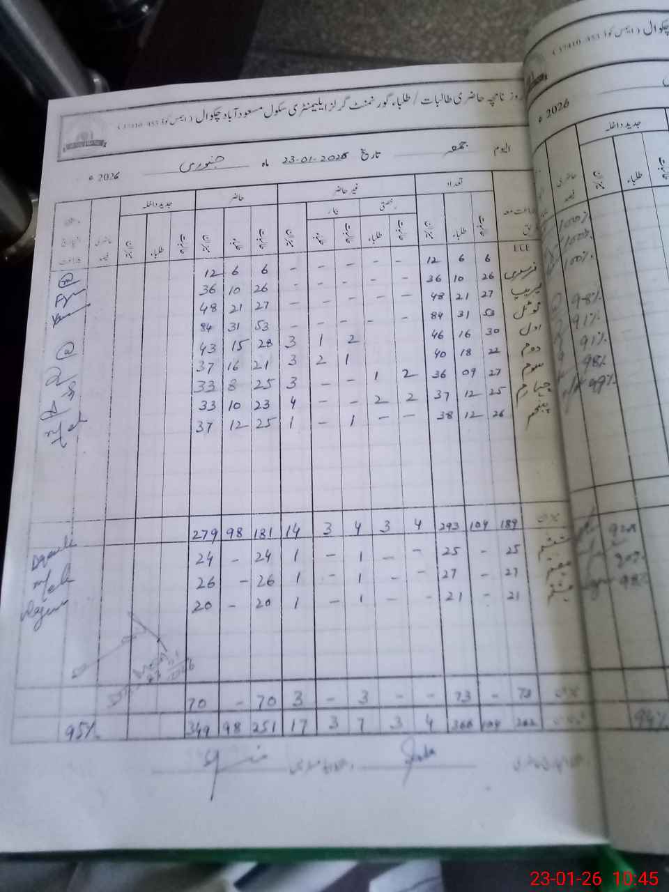 | No. of Students Present - Female | 0 | 6 | 28 | 21 | 25 | 23 | 25 | 24 | 26 | 20 | 251 | |||||