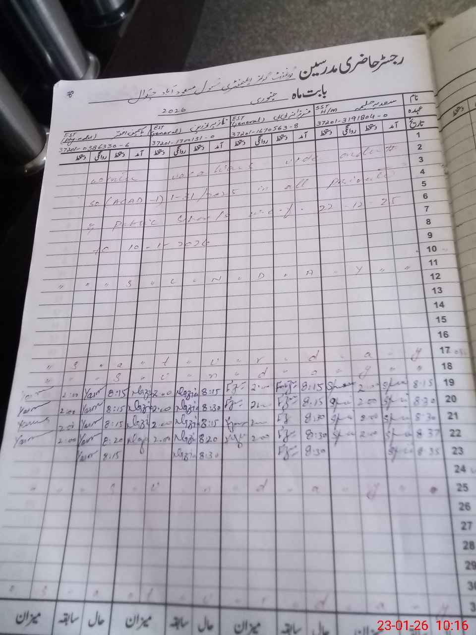 | CNIC | Full Name | Designation | R/C | Absence During Last Calender Month |