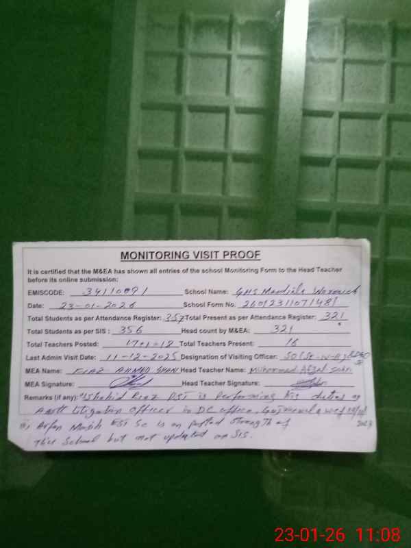 | EMIS Code: 34110091 | Name of School: GHS MANDIALA WARRIACH | |||
