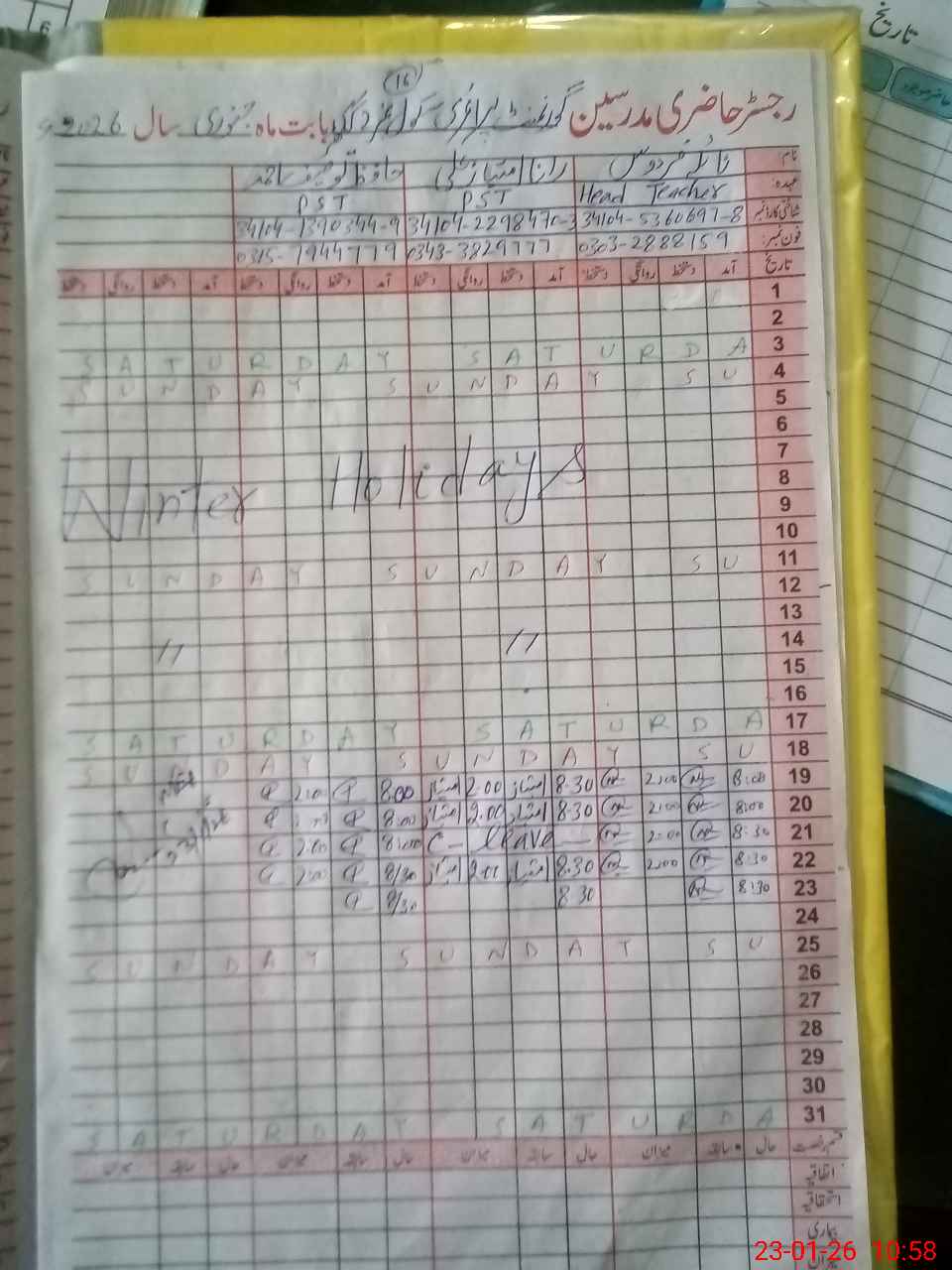 | Name: Na**** Fe**** Designation: (School Headmaster's/Headmistress's) PST Phone/Cell Number: 03**** |