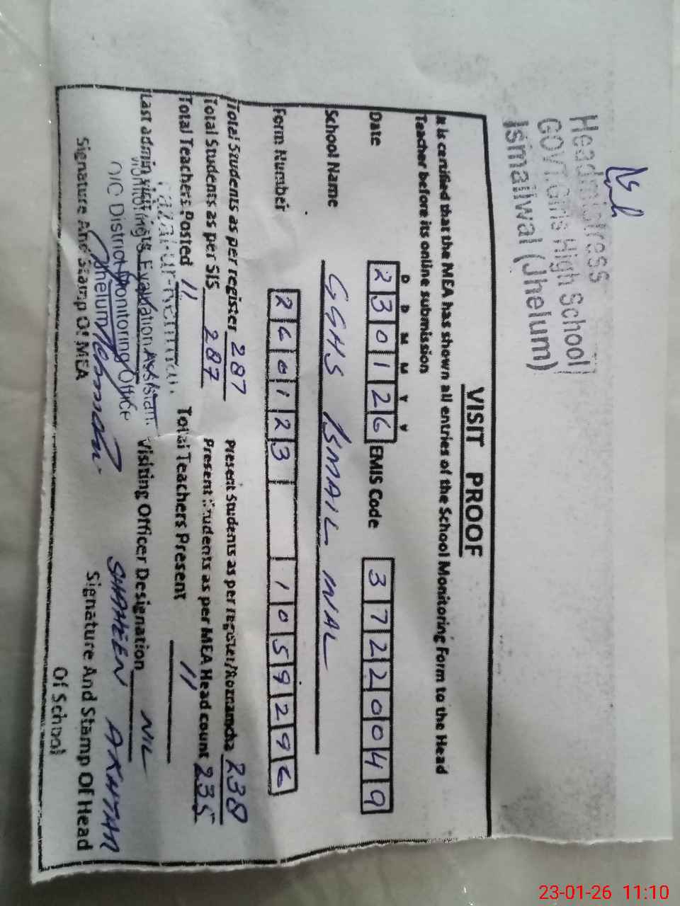 | EMIS Code: 37220049 | Name of School: GGHS ISMAILWAL | |||