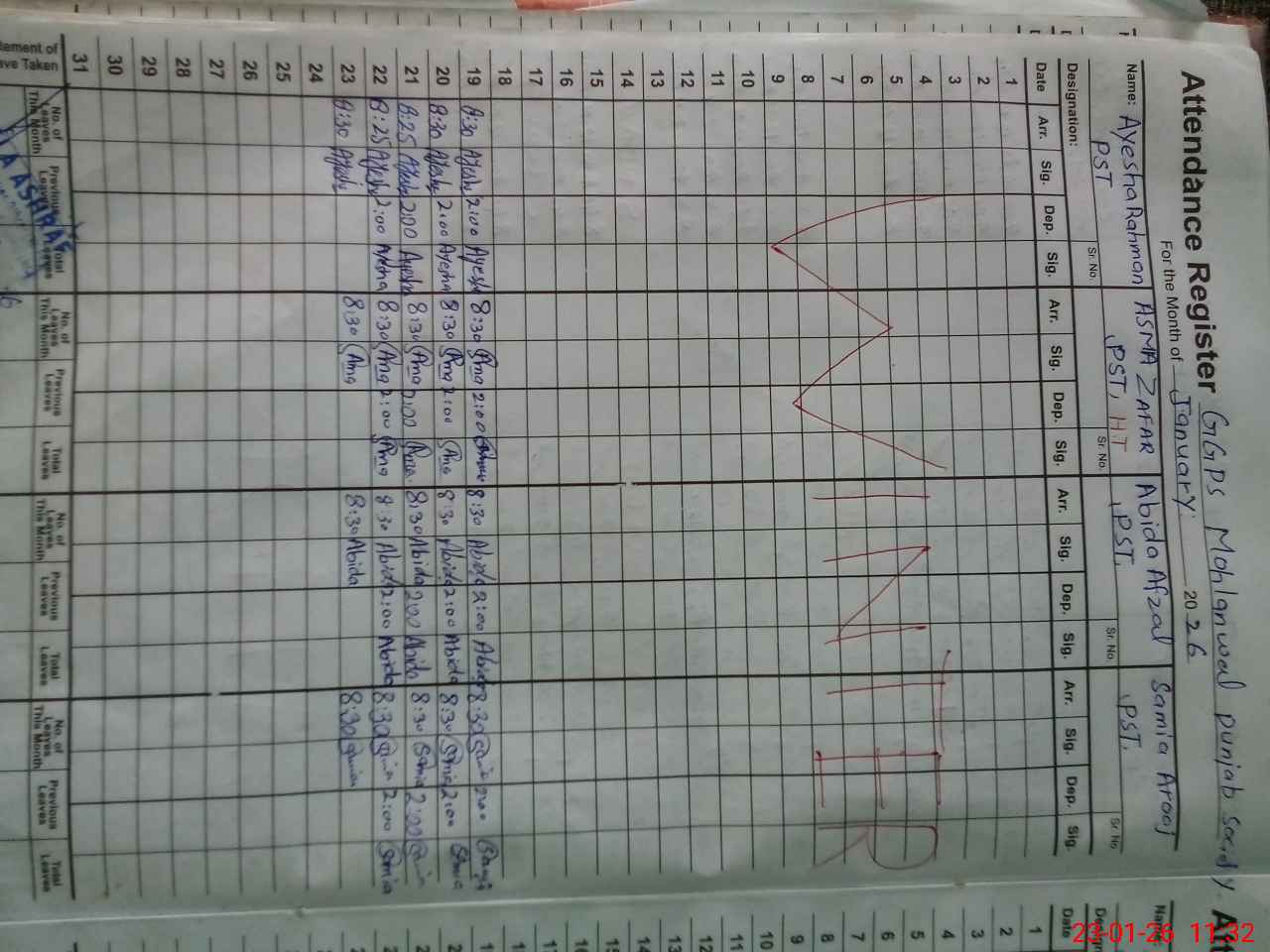 | CNIC | Full Name | Designation | R/C | Absence During Last Calender Month |