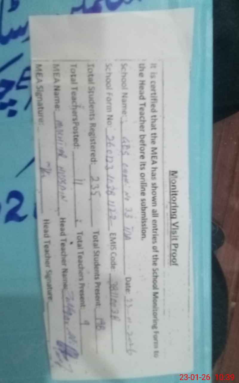 | Attendance Register | Head Teacher | MEA with School | Visit Proof |