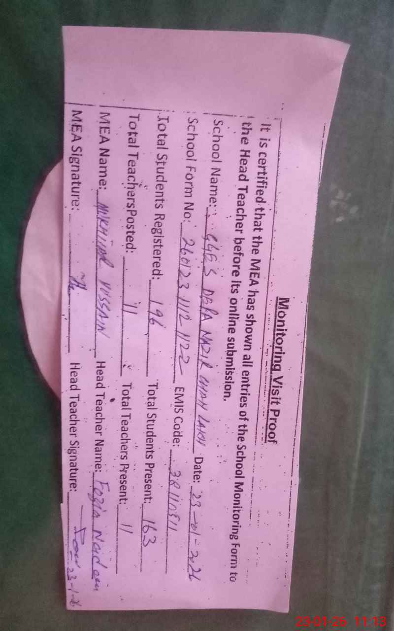 | Attendance Register | Head Teacher | MEA with School | Visit Proof |