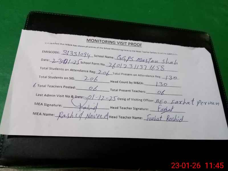 | EMIS Code: 31331094 | Name of School: GGPS MASTAN SHAH | |||