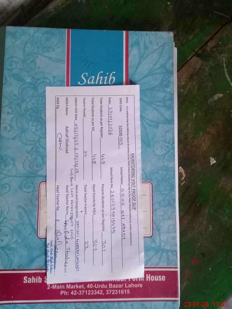 | EMIS Code: 32330103 | Name of School: GGHS NAI ABADI | |||