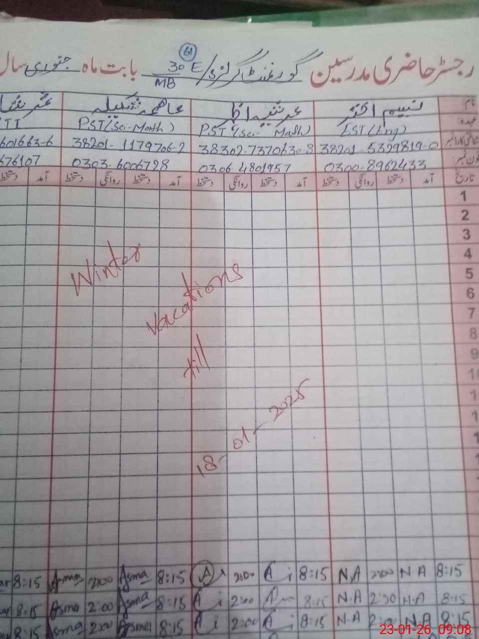 | Name: Na**** Iq**** Designation: (School Headmaster's/Headmistress's) Sse Phone/Cell Number: 03**** |