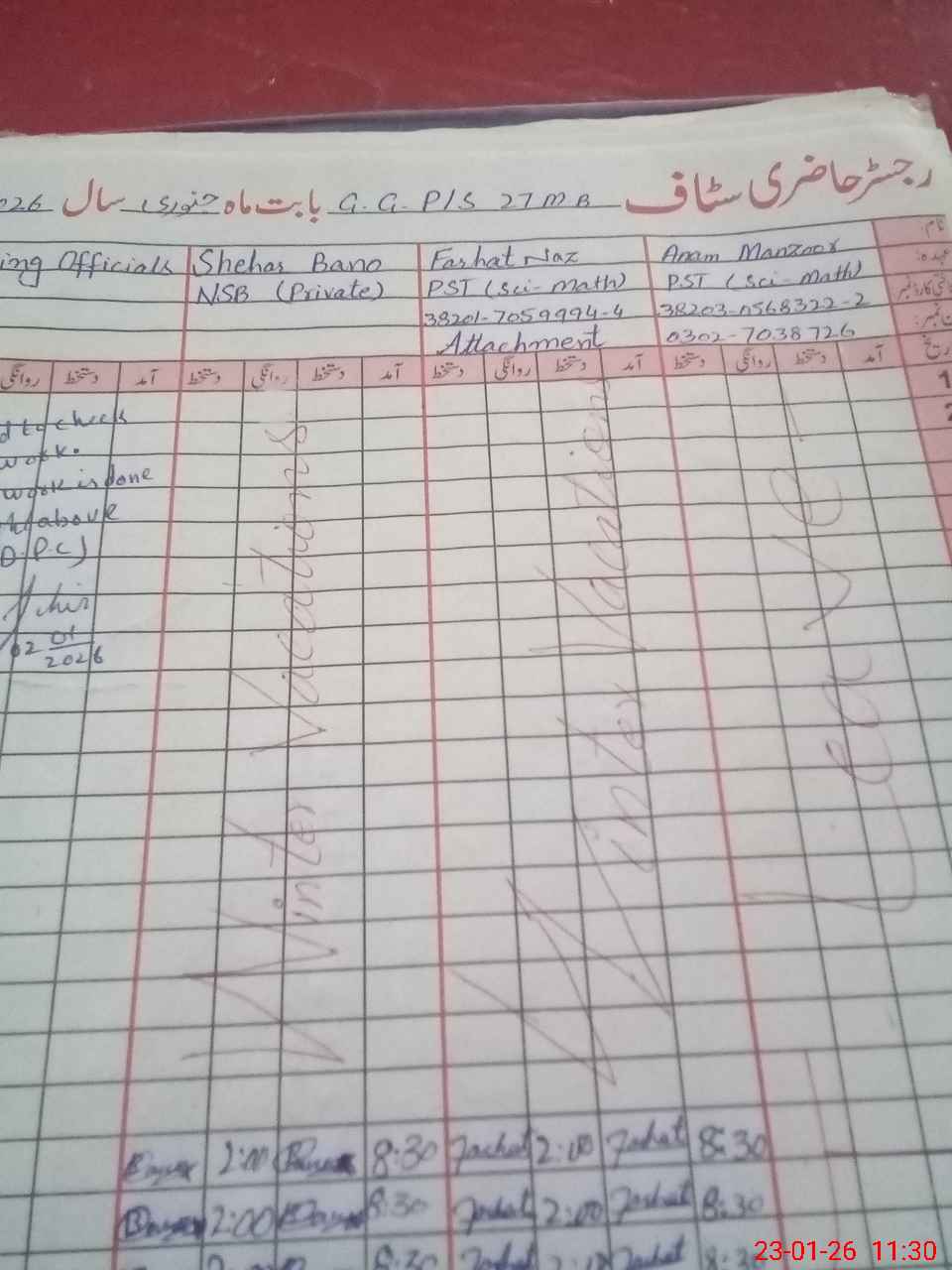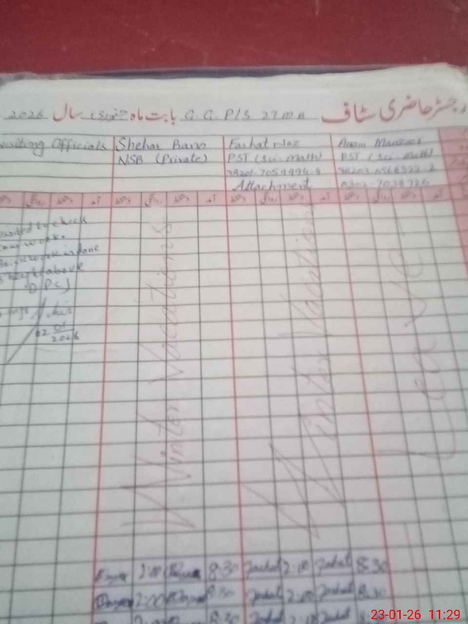 | Remarks (Use Separate Page if Required): ggps 27 mb student on sis 108 student on register 108 head count 84 no teacher absent no visit no aeo school is in bad condition washroom and class rooms are dangerous | |||||