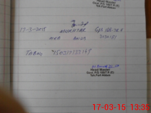 | Name: Mu**** Kh**** Designation: (School Headmaster's/Headmistress's) PST Phone/Cell Number: 03**** |