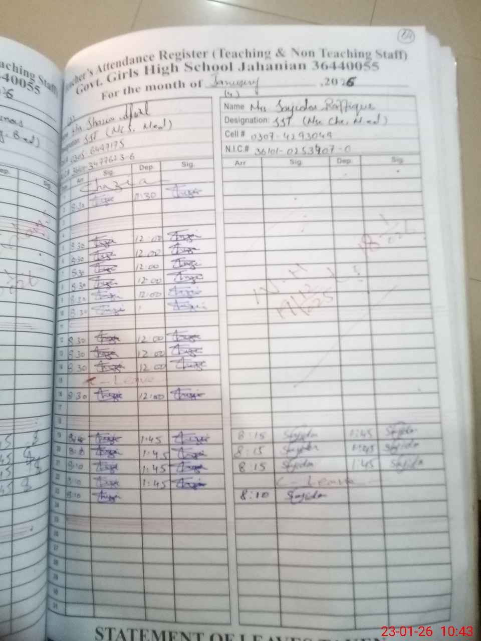 | 36**** | Sh**** Qa**** | PST Science/Maths | Regular | 0 | 0 | 0 | 0 | 0 | 0 | 0 | 0 | 0 | Casual |