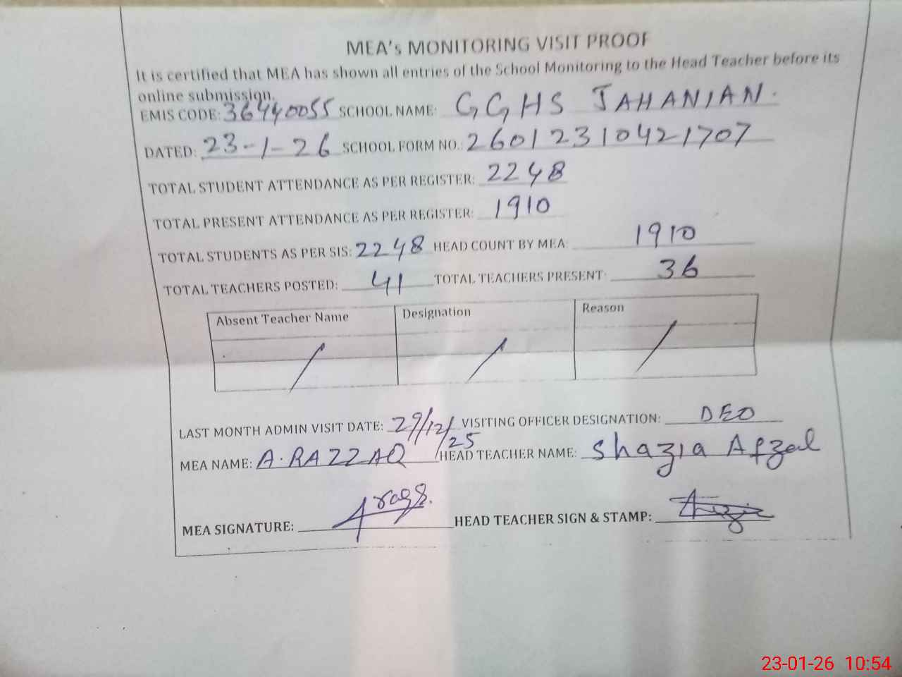 | EMIS Code: 36440055 | Name of School: GGHS JAHANIAN, JAHANIAN | |||