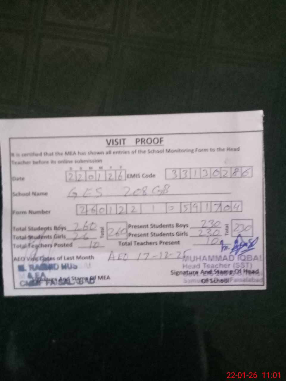 | EMIS Code: 33130286 | Name of School: GES 208/GB | |||