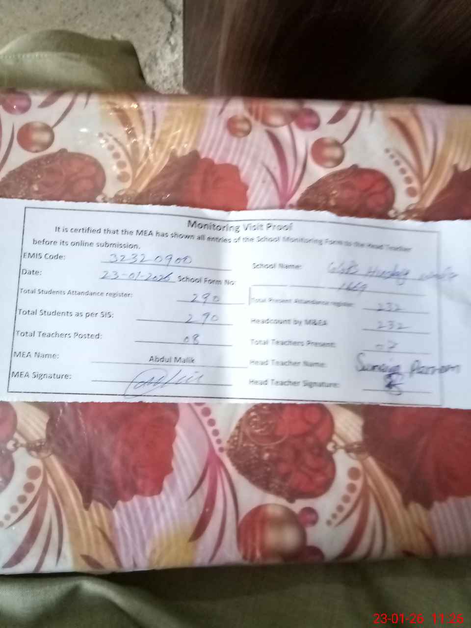 | EMIS Code: 32320900 | Name of School: GGPS HUDDAY WALA | |||