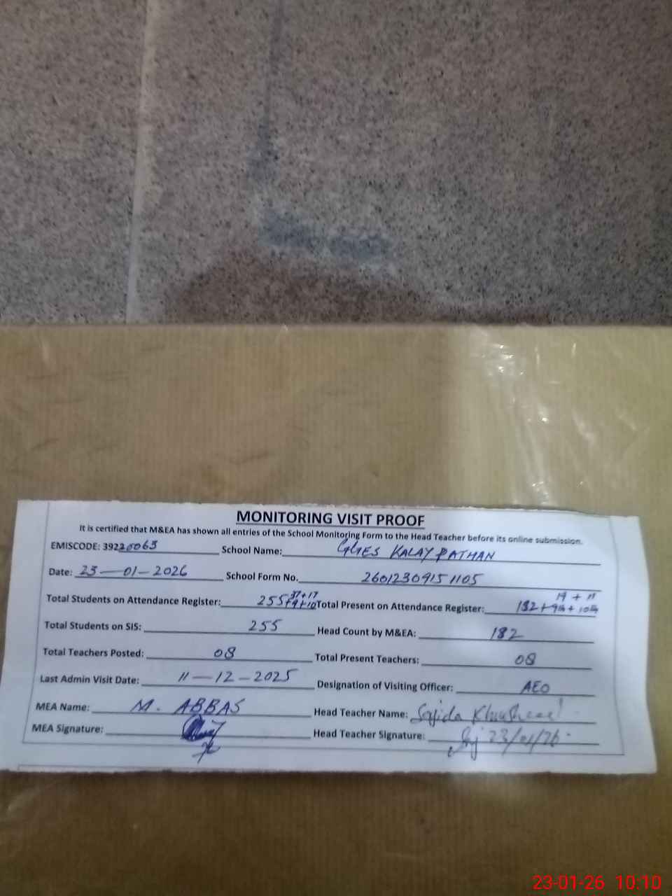 | EMIS Code: 39220063 | Name of School: GGES KALAY PATHAN | |||