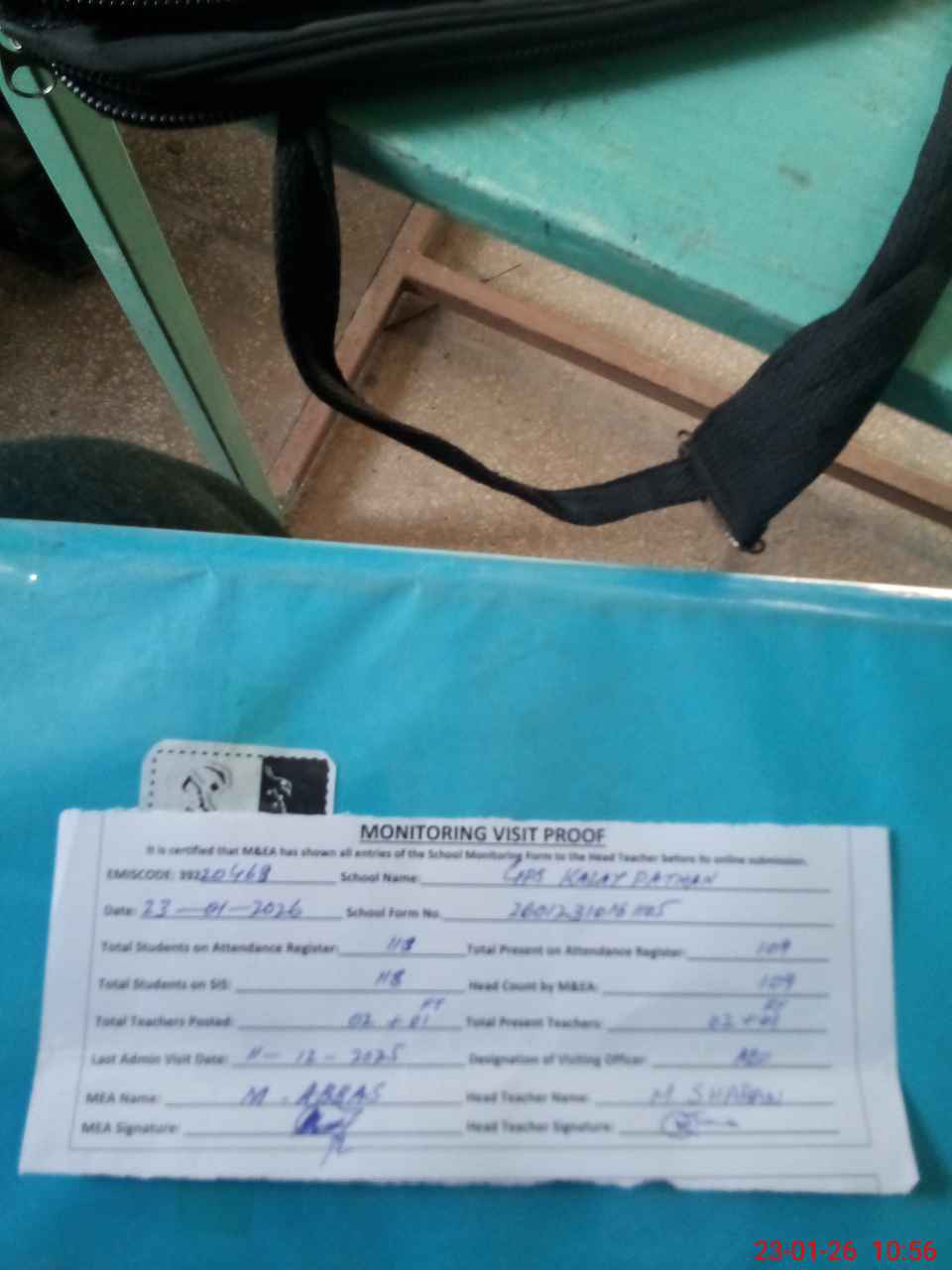 | Attendance Register | Head Teacher | MEA with School | Visit Proof |