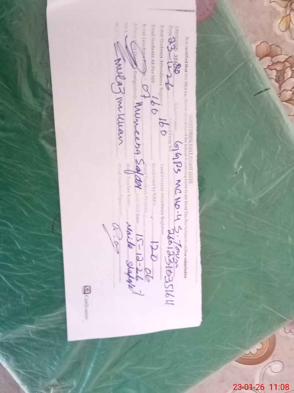 | Name: RE**** AN**** Designation: (School Headmaster's/Headmistress's) PTC/JV Phone/Cell Number: 03**** |