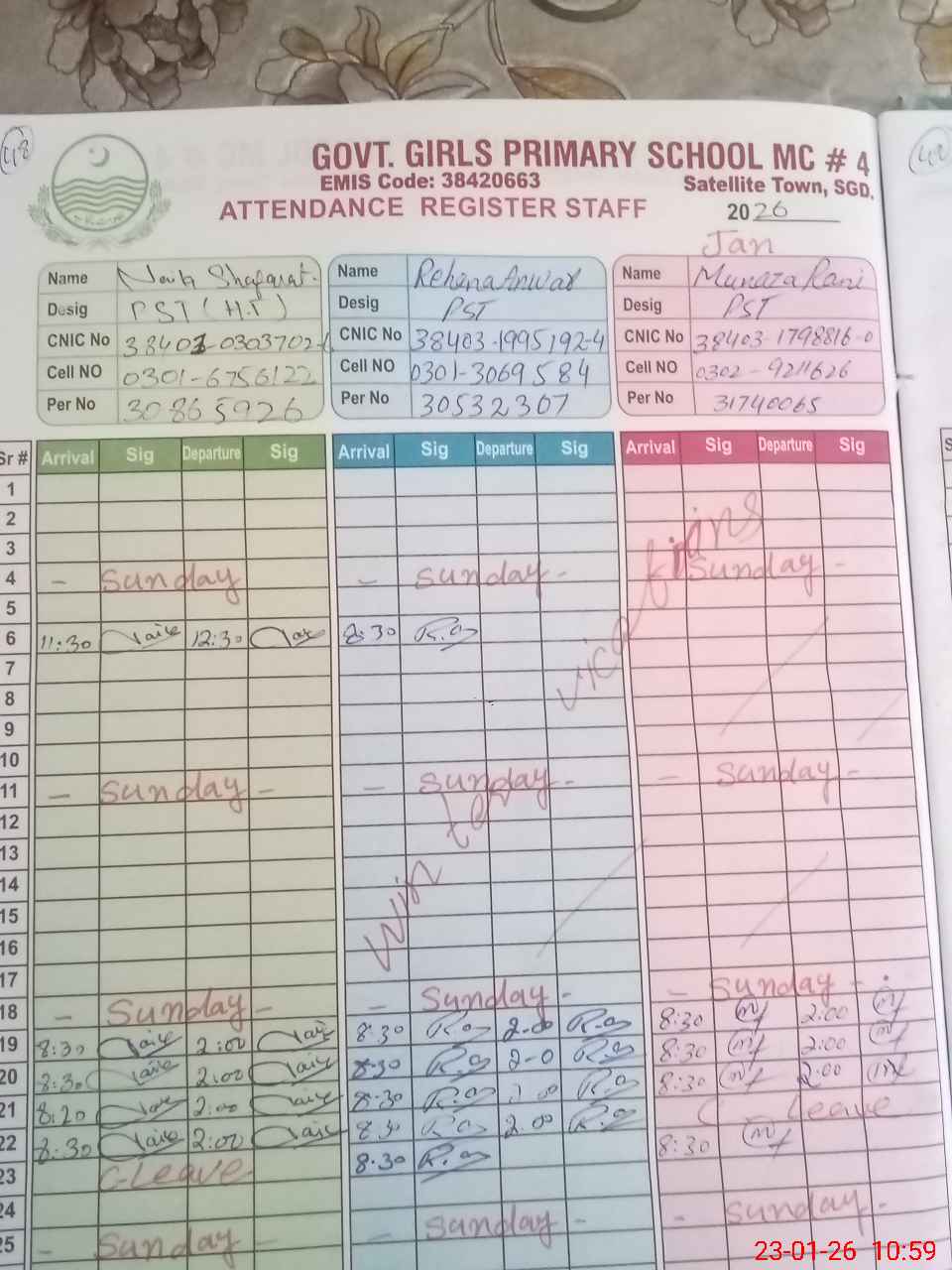 | EMIS Code: 38420663 | Name of School: GGPS MC NO.4 SATTELITE TOWN SARGODHA | |||