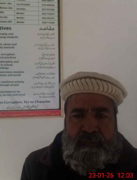 | Name: Ir**** Sa**** Designation: (School Headmaster's/Headmistress's) Est Phone/Cell Number: 03**** |