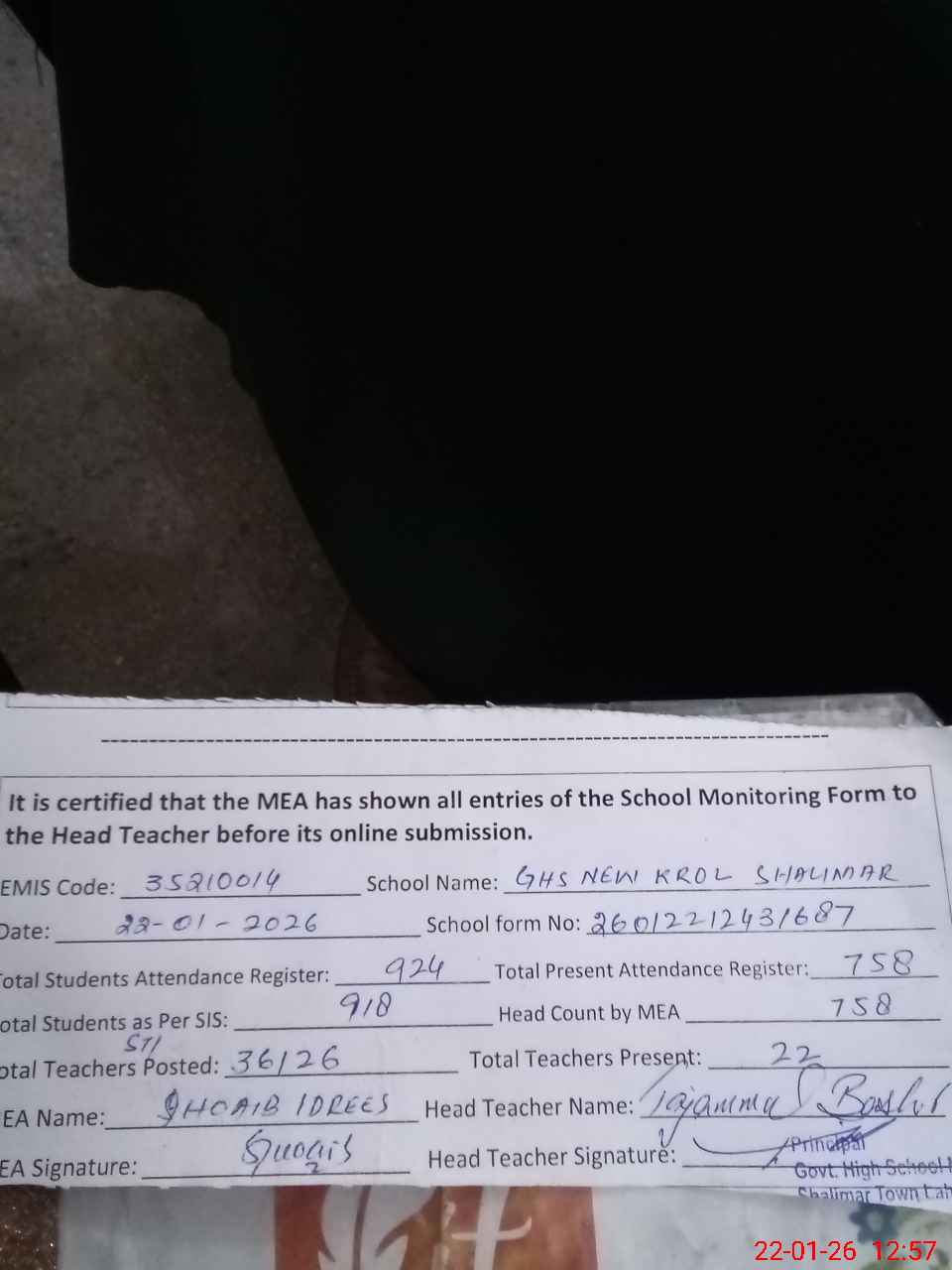 | EMIS Code: 35210014 | Name of School: GHS NEW KROLE SHALIMAR TOWN | |||