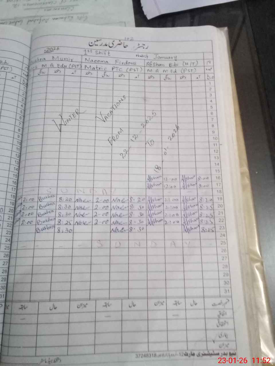 | 35**** | Sa**** Ra**** | PST | Regular | 2 | 0 | 0 | 0 | 0 | 0 | 0 | 0 | 2 | Casual |
