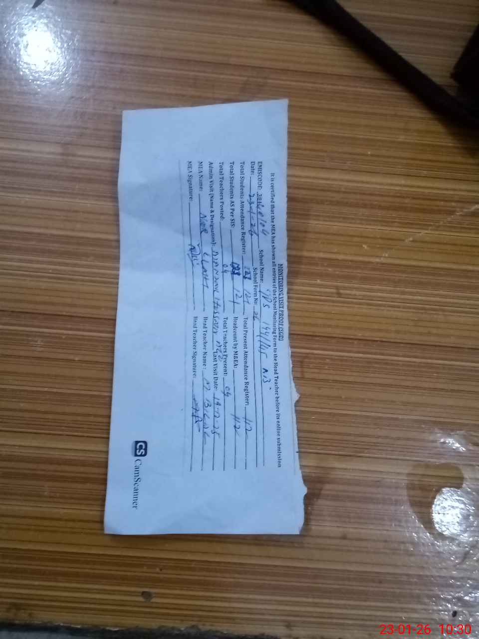 | Attendance Register | Head Teacher | MEA with School | Visit Proof |