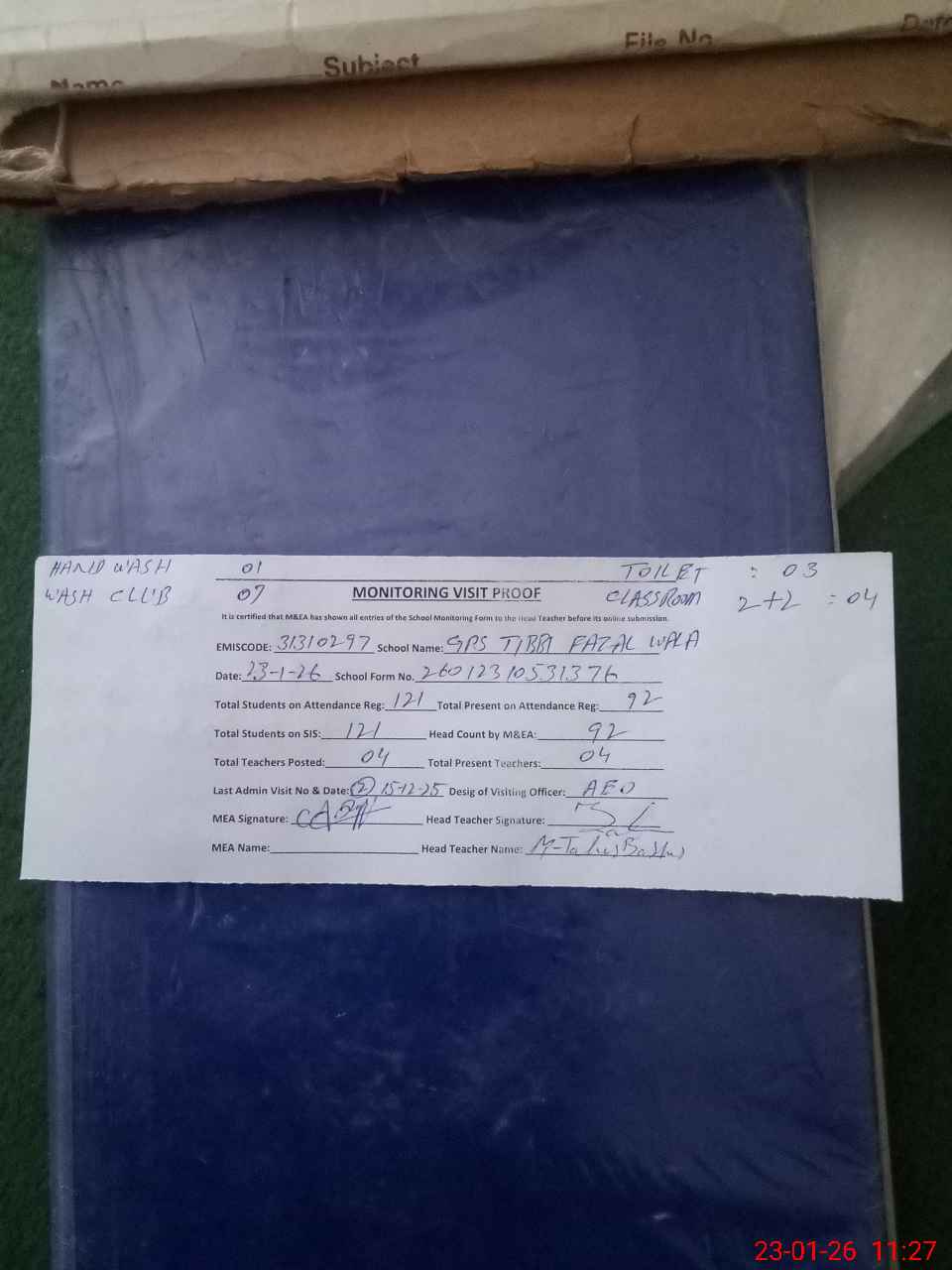 | EMIS Code: 31310297 | Name of School: GPS TIBI FAZIAL WALA | |||