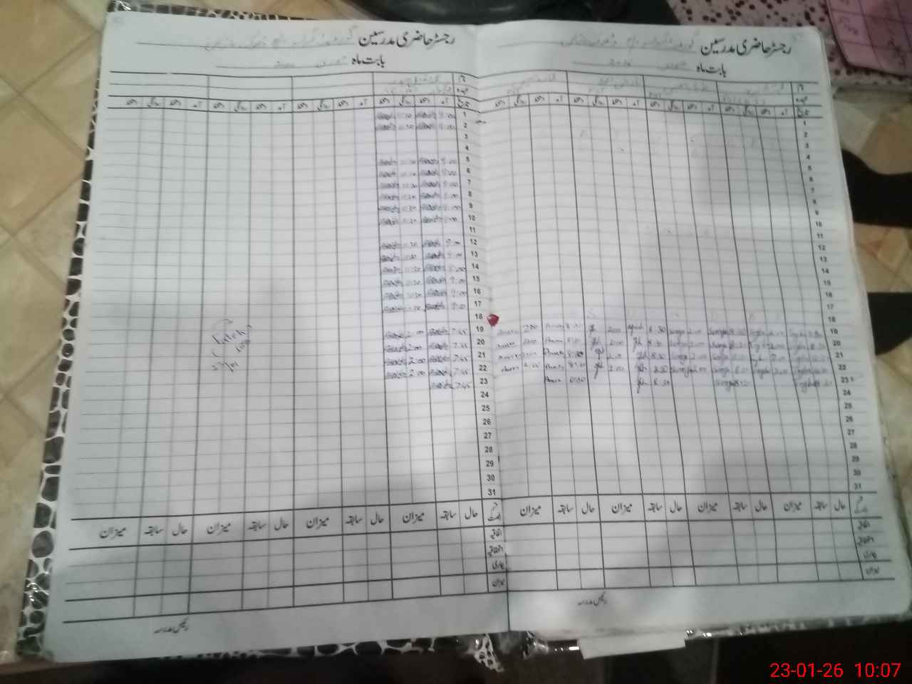 | CNIC | Full Name | Designation | R/C | Absence During Last Calender Month |