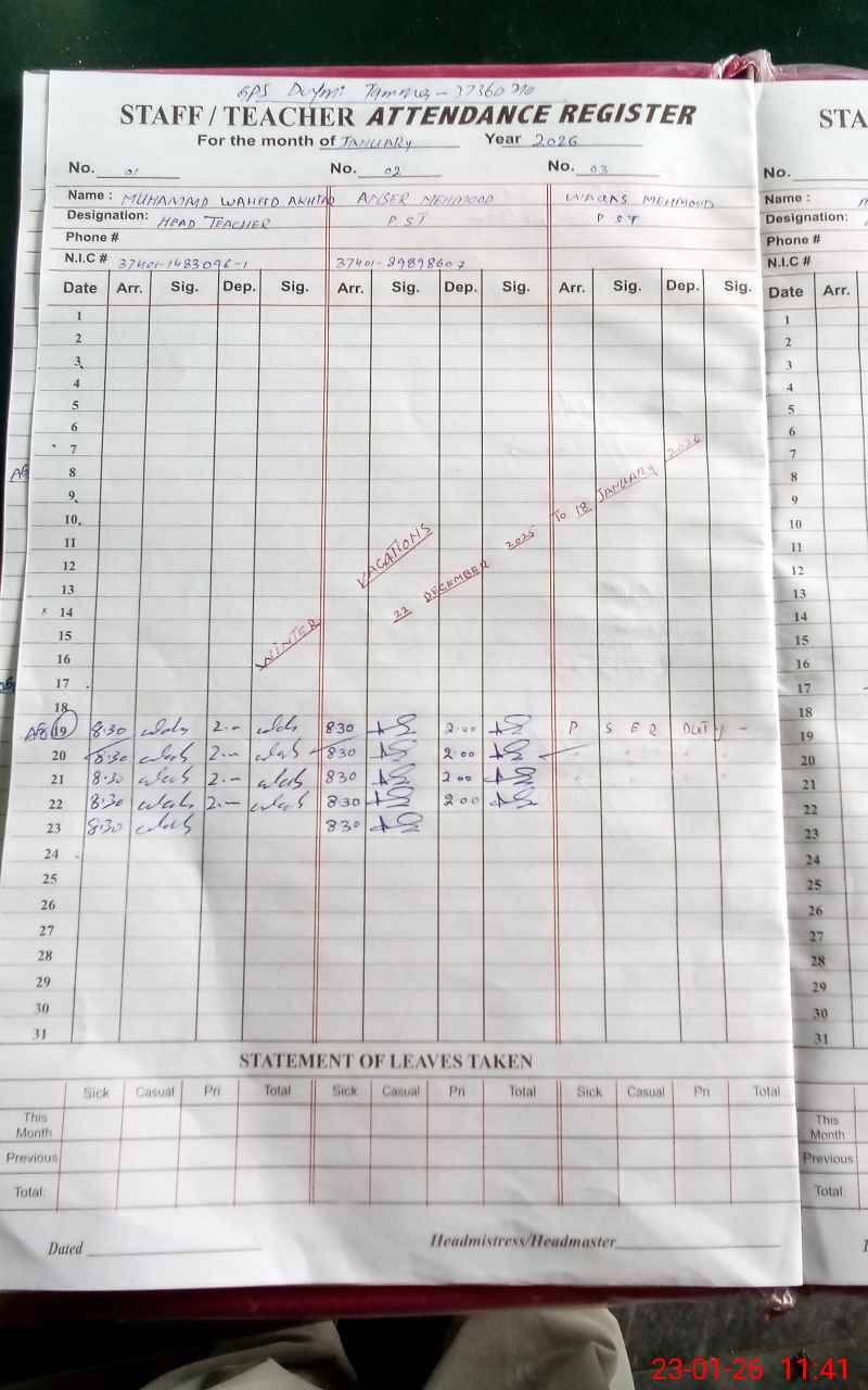 | Name: Mu**** Wa**** Ak**** Designation: (School Headmaster's/Headmistress's) PST Phone/Cell Number: 03**** |