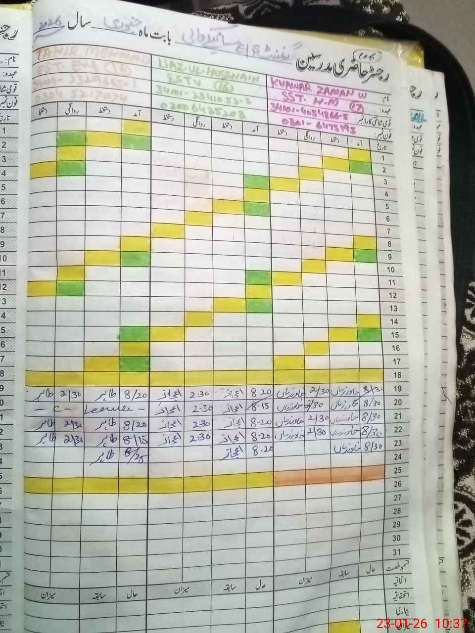 | Name: KH**** ZA**** Designation: (School Headmaster's/Headmistress's) S.S.T.(Arts) Phone/Cell Number: 03**** |