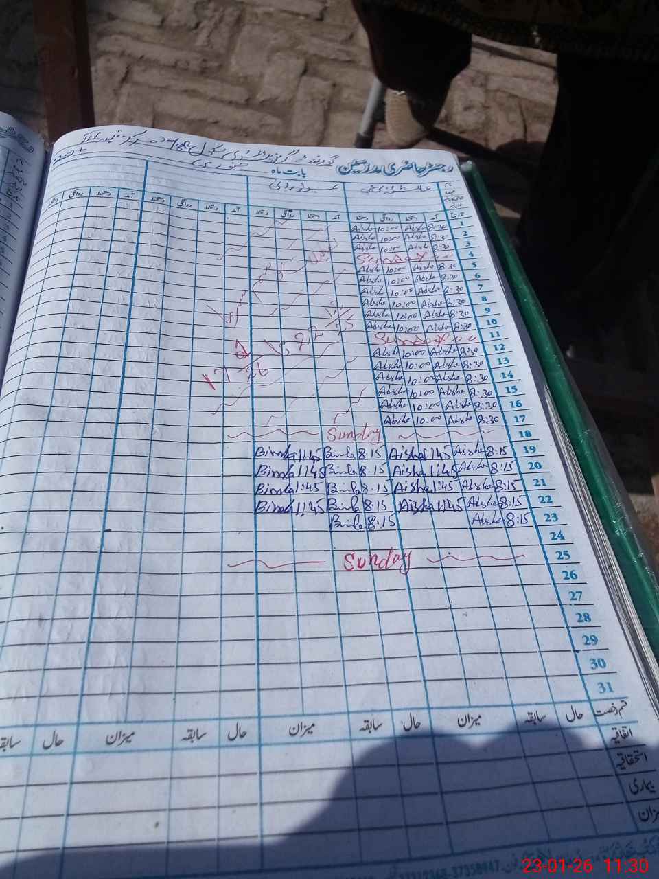 | CNIC | Full Name | Designation | R/C | Absence During Last Calender Month |