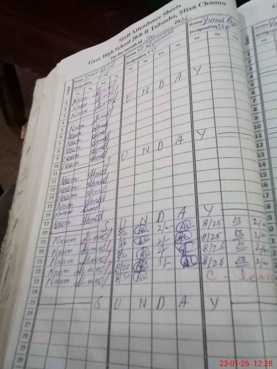 | 36**** | Yo**** Ra**** | SSE Science | Contract | 0 | 0 | 0 | 0 | 0 | 0 | 0 | 0 | 0 | Casual |