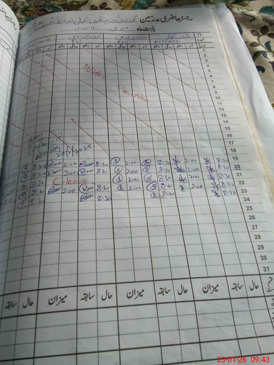 | Leave | Duty | Absent | Maternity | Medical | Ex- Pak |