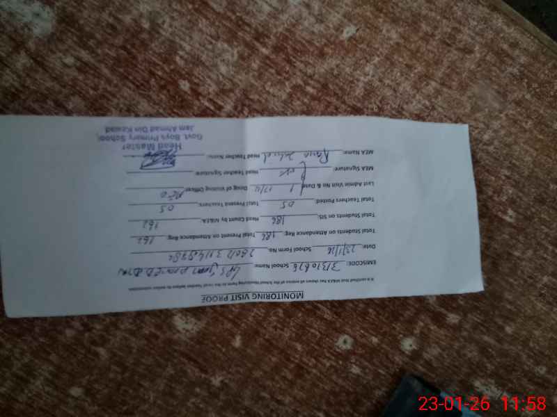 | Attendance Register | Head Teacher | MEA with School | Visit Proof |