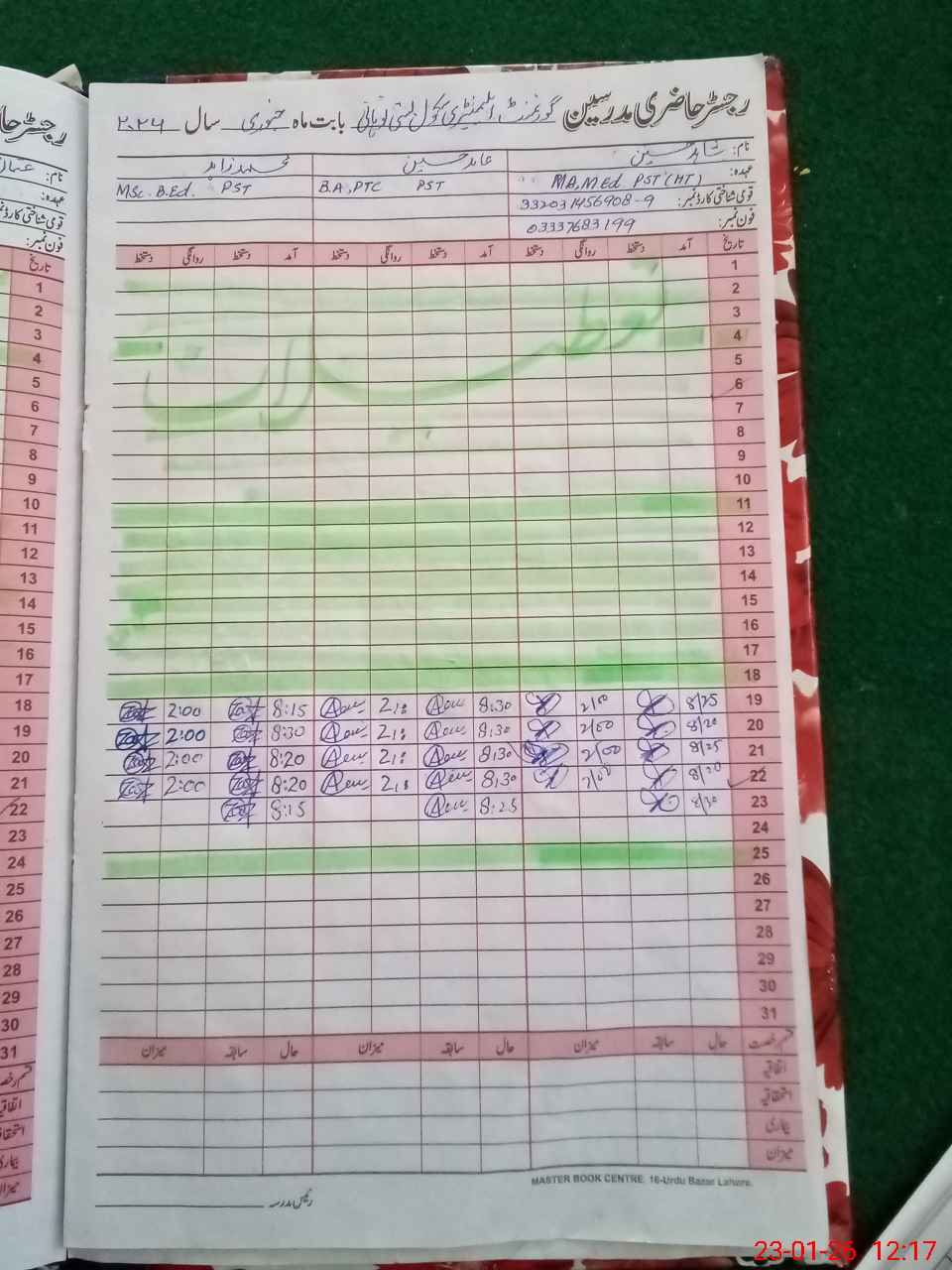 | Name: Sh**** Hu**** Designation: (School Headmaster's/Headmistress's) PST Phone/Cell Number: 03**** |