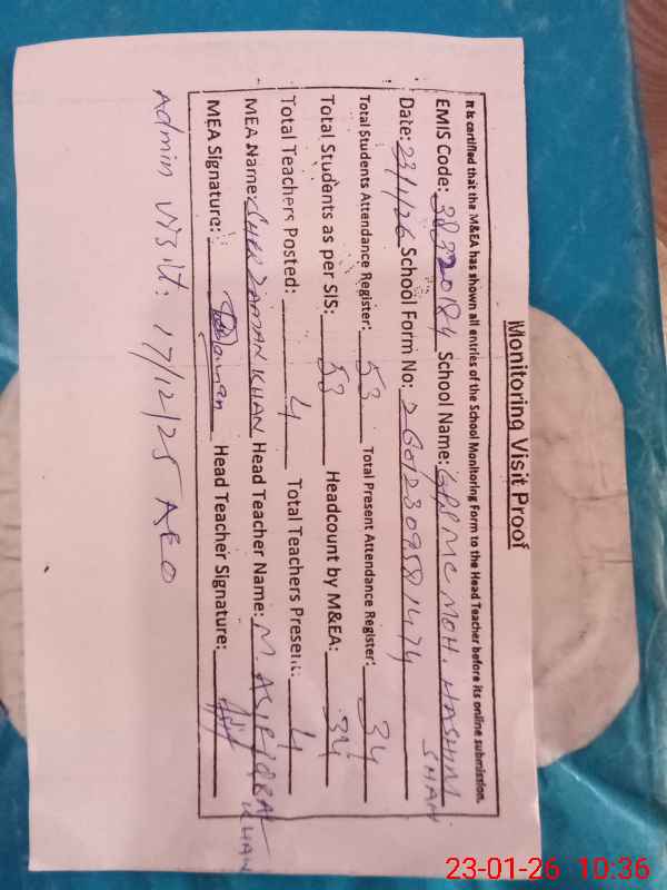 | EMIS Code: 38320184 | Name of School: GPS MC MOHALLAH HASHIM SHAH | |||