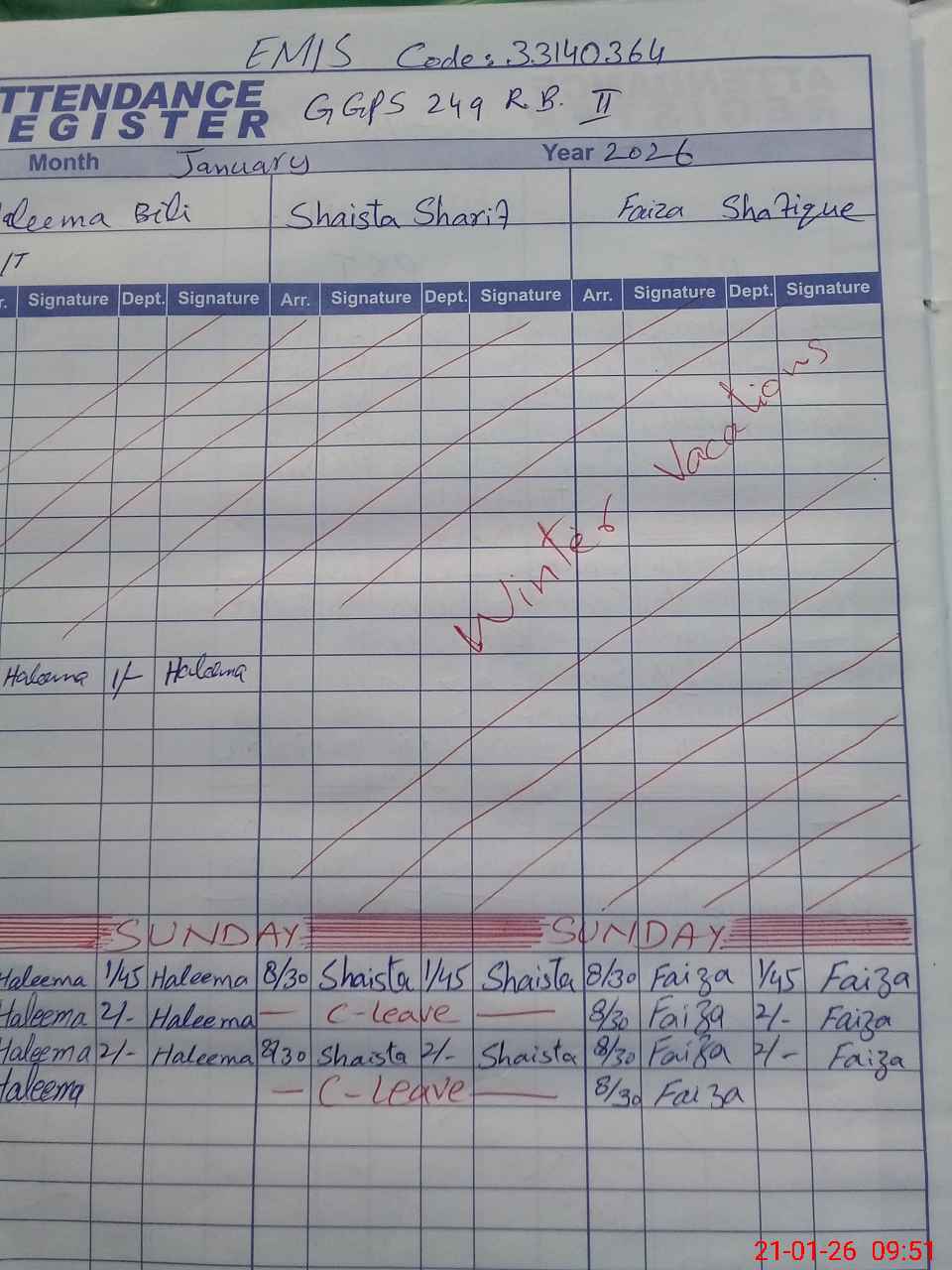 | CNIC | Full Name | Designation | R/C | Absence During Last Calender Month |