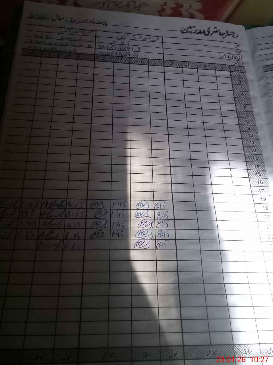 | Name: Me**** Ja**** Designation: (School Headmaster's/Headmistress's) H T Phone/Cell Number: 03**** |