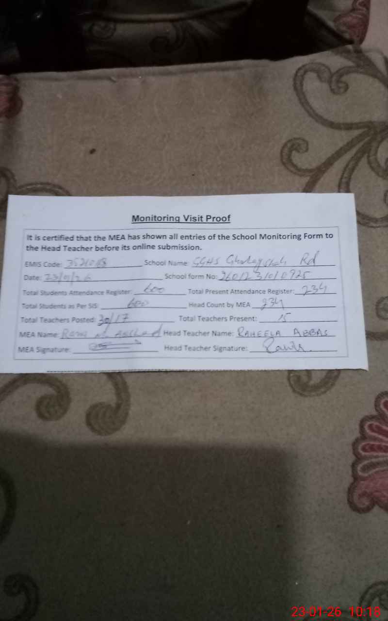 | EMIS Code: 35210168 | Name of School: GGHS GHORAY SHAH(Newly upgraded) | |||