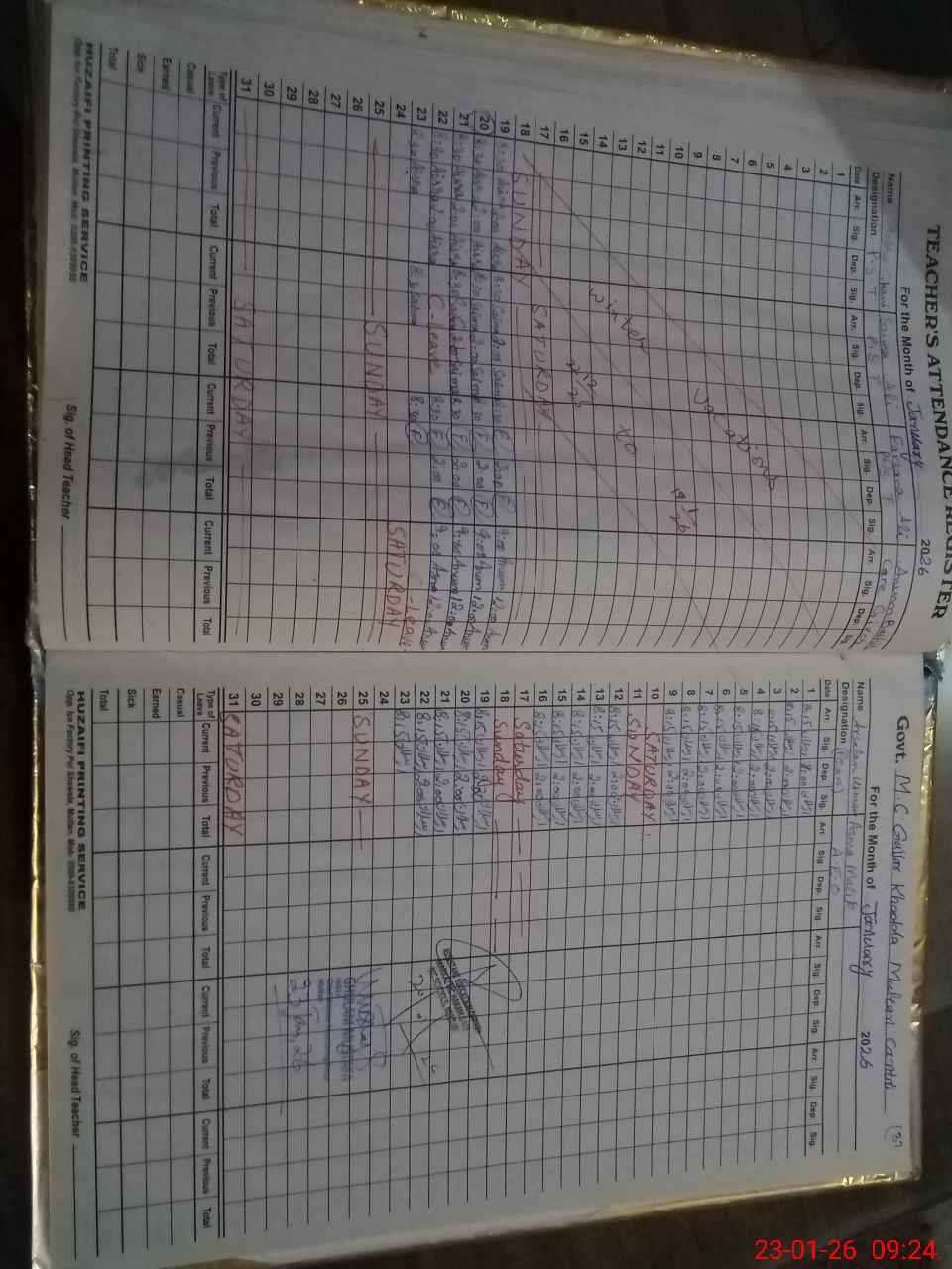 | CNIC | Full Name | Designation | R/C | Absence During Last Calender Month |