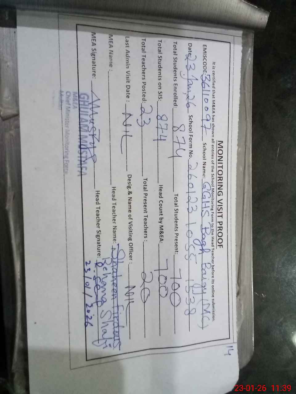 | Monitoring Date: 23-01-2026 | Start Time: 23-01-2026 10:49 AM | End Time: 23-01-2026 11:42 AM | Name of MEA: Gh**** Mu**** | |