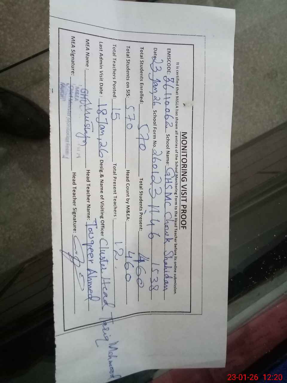 | EMIS Code: 36110062 | Name of School: GHS MC CHOWK SHAHIDAN MULTAN | |||