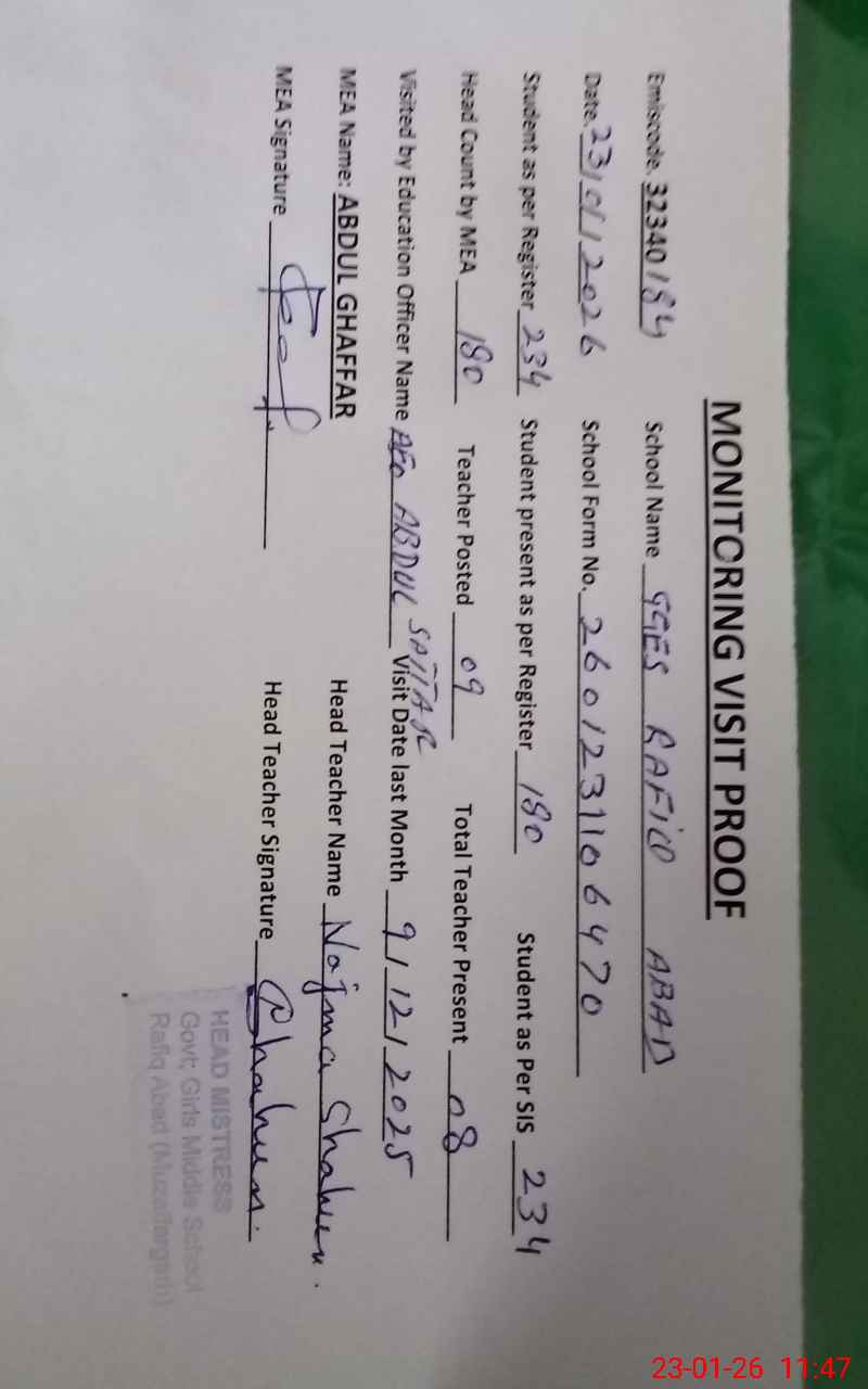 | Attendance Register | Head Teacher | MEA with School | Visit Proof |