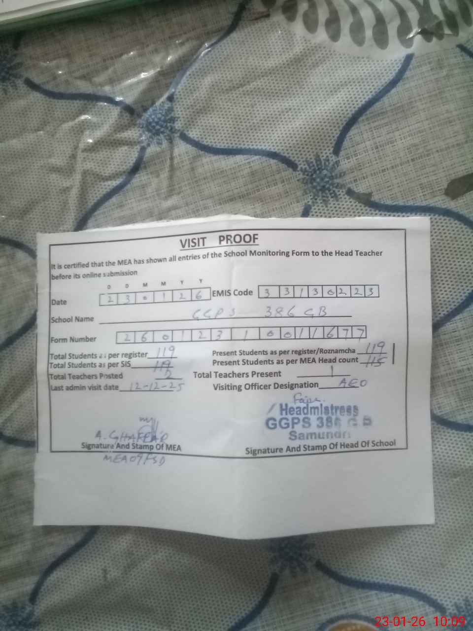 | EMIS Code: 33130223 | Name of School: GGPS CHAK 386 GB SAMUNDRI | |||