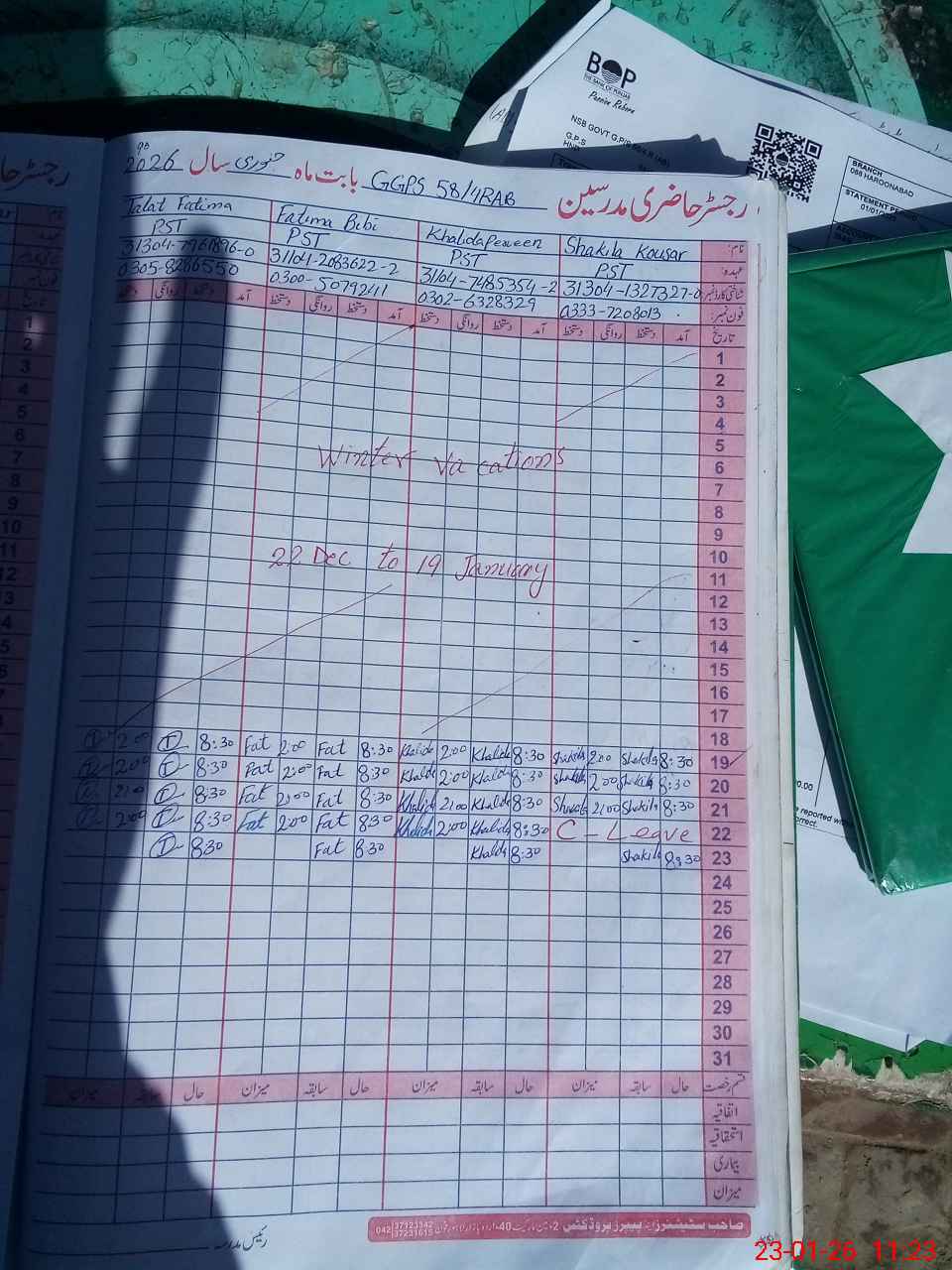 | Name: SH**** KO**** Designation: (School Headmaster's/Headmistress's) PST Phone/Cell Number: 03**** |