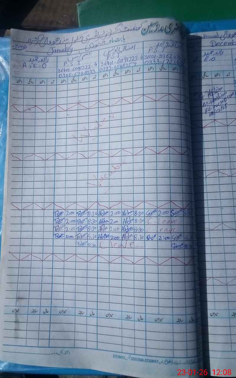 | CNIC | Full Name | Designation | R/C | Absence During Last Calender Month |
