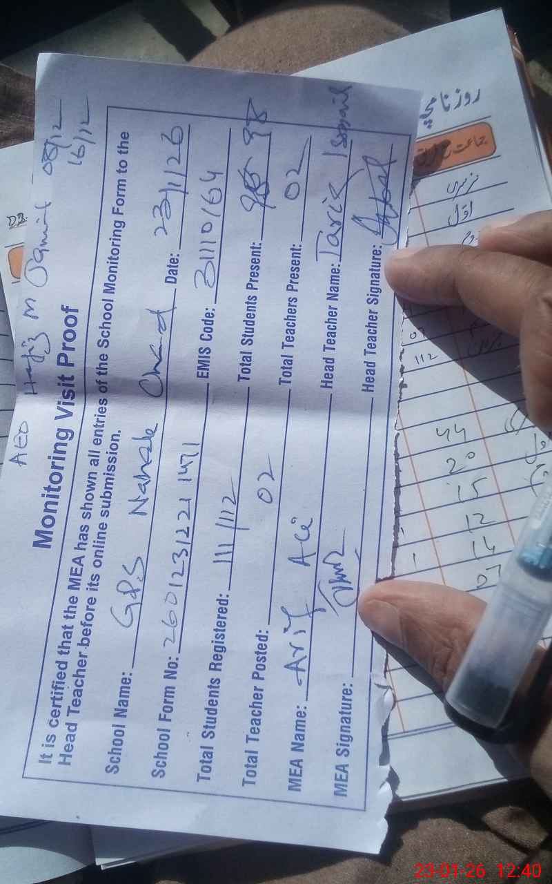 | Attendance Register | Head Teacher | MEA with School | Visit Proof |