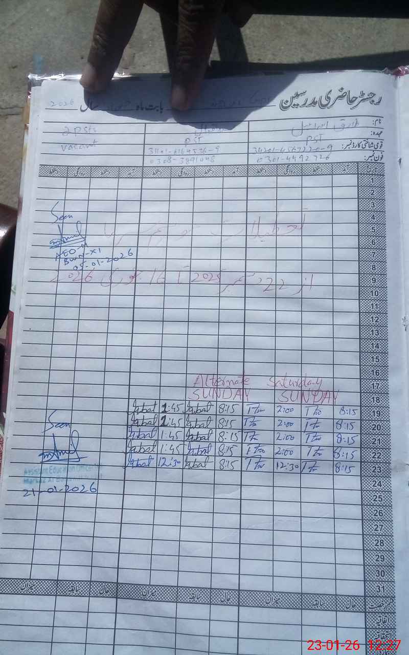 | Name: Ta**** Is**** Designation: (School Headmaster's/Headmistress's) PST Phone/Cell Number: 03**** |