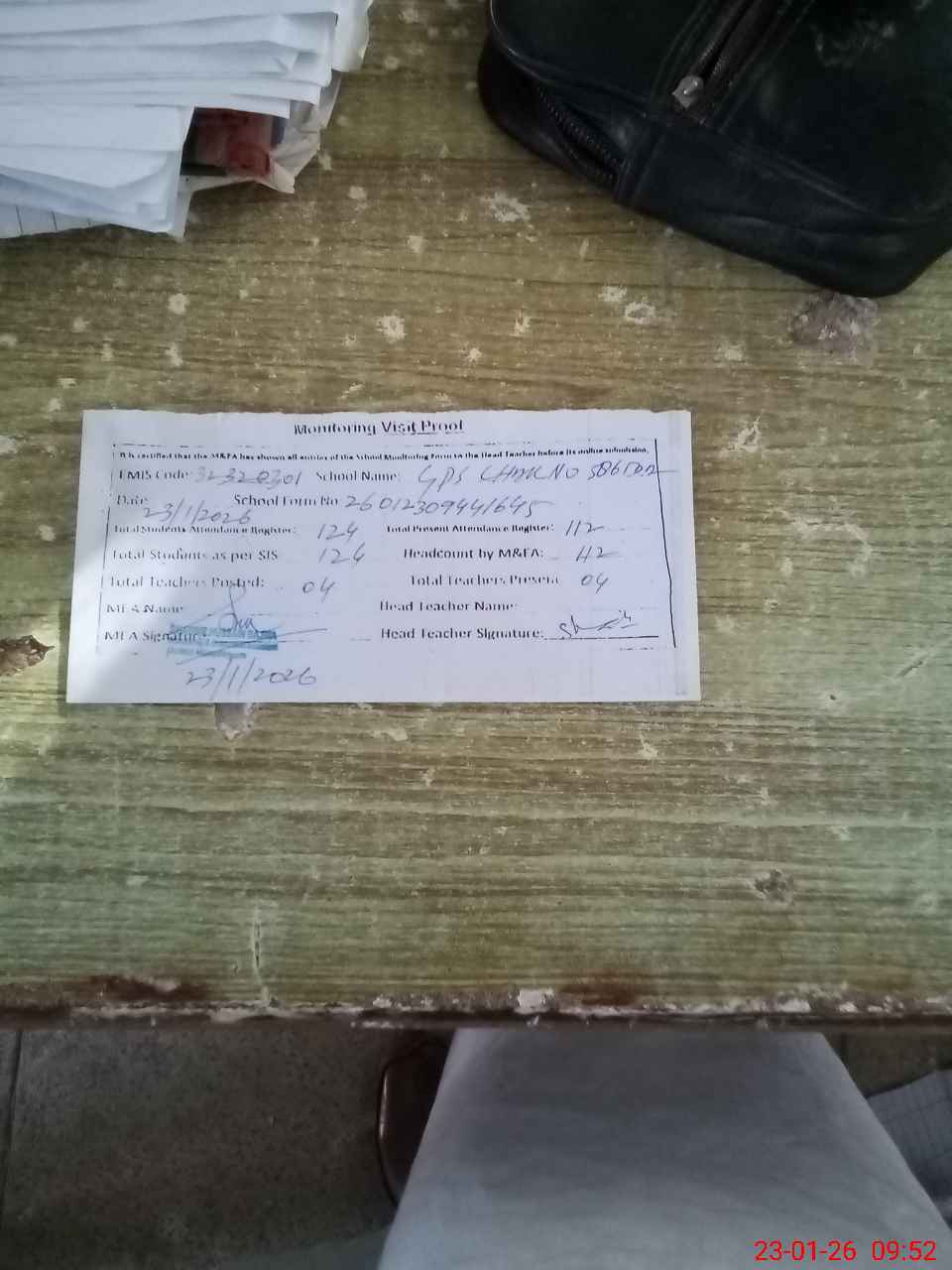 | EMIS Code: 32320301 | Name of School: GPS CHAK NO.586 TDA | |||
