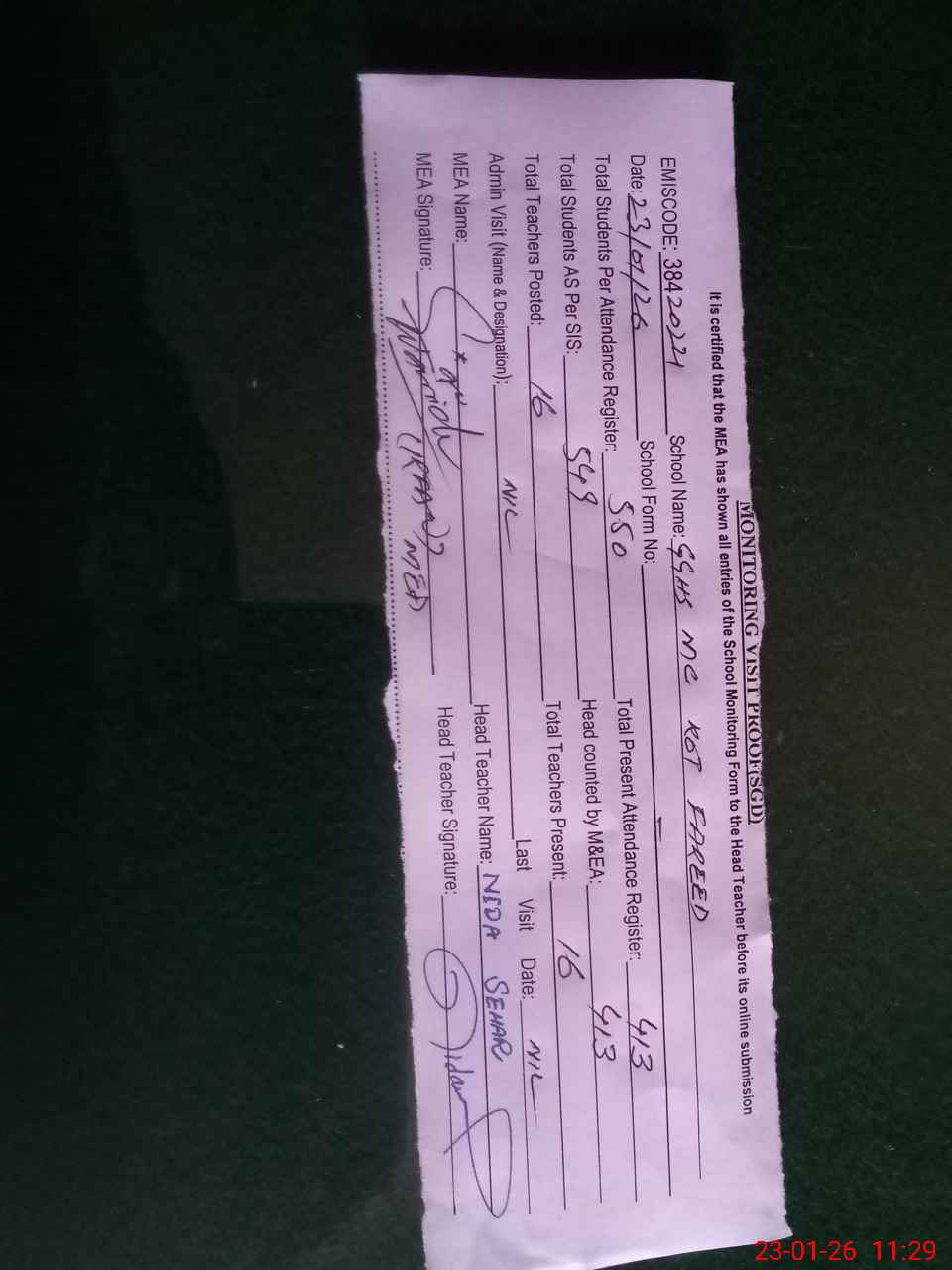 | EMIS Code: 38420221 | Name of School: GGHS MC KOT FAREED | |||